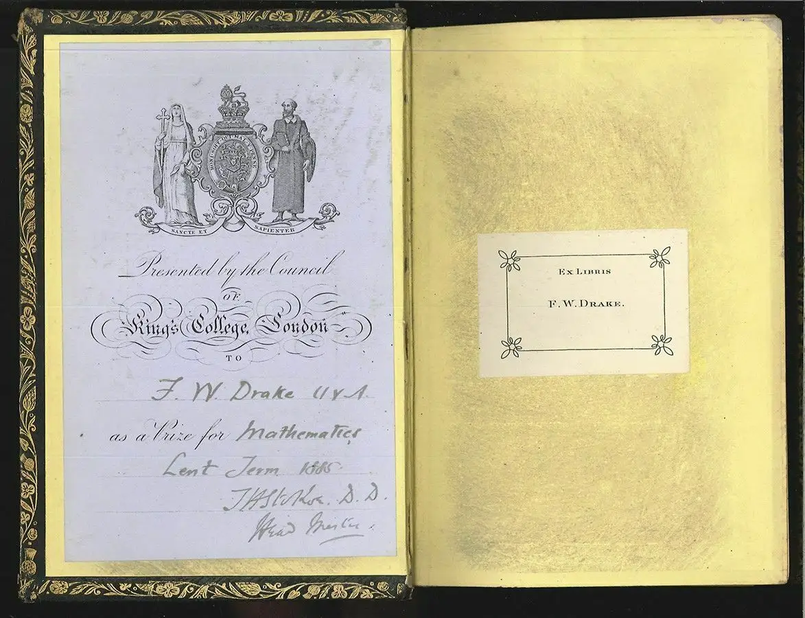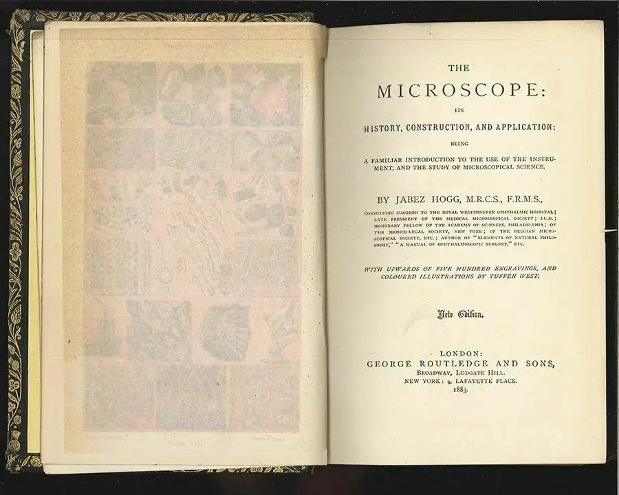 Bemerkungen: Schulpreisband für F. W. Drake: "Presented by the Council of King`s College London to F. W. Drake as a Prize for Mathematics, Lent Term 1885". Das grundlegende Werk zur Verwendung des Mikroskops von Jabez Hogg (1817-1899) wurde erstmals 1854 publiziert und erfuhr zahlreiche Auflagen.