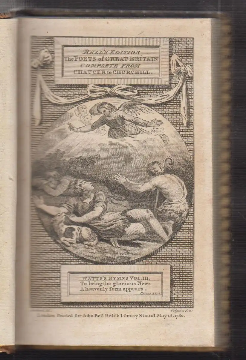 Edinburgh, Apollo Press by the Martins 1782. Vol. 3 (of 7). 12°. LXII, 192 S. Mit gest. Tit. Ldr. d. Zt. Mit zweifarb. Rückensch, feiner Goldpräg. Stehkantenvergold. Exlibris d. Bibliothèque de Mouchy - (Bell`s Edition. The Poets of Great Britain complete from Chaucer to Churchill, Isaac Watts Vol. 3)