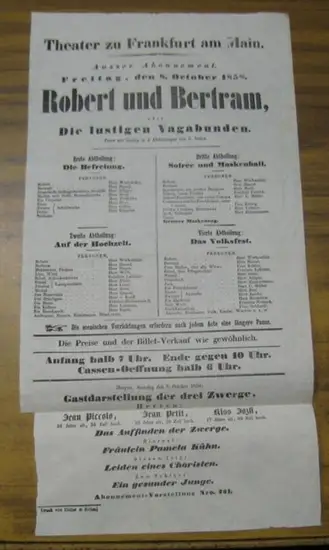 Theater zu Frankfurt am Main. Intendanz: Roderich Benedix. - Gustav Räder: Besetzungsliste zu: Robert und Bertram, oder Die Lustigen Vagabunden. Freitag, den 8. October 1858, ausser Abonnement, im Theater zu Frankfurt am Main. - Posse mit Gesang in 4 Abth