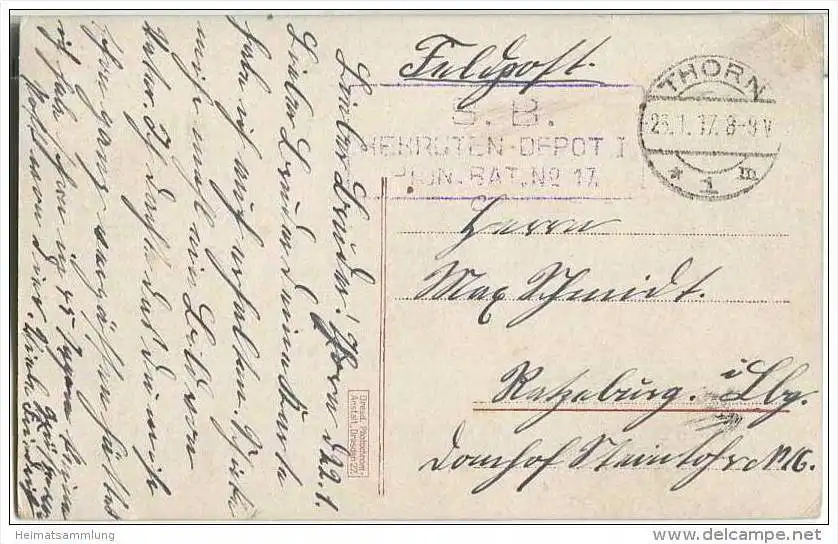 Thorn - Torun - Weichsel - Feldpost S.B Rekruten-Depot I Pion. Bat. No 17