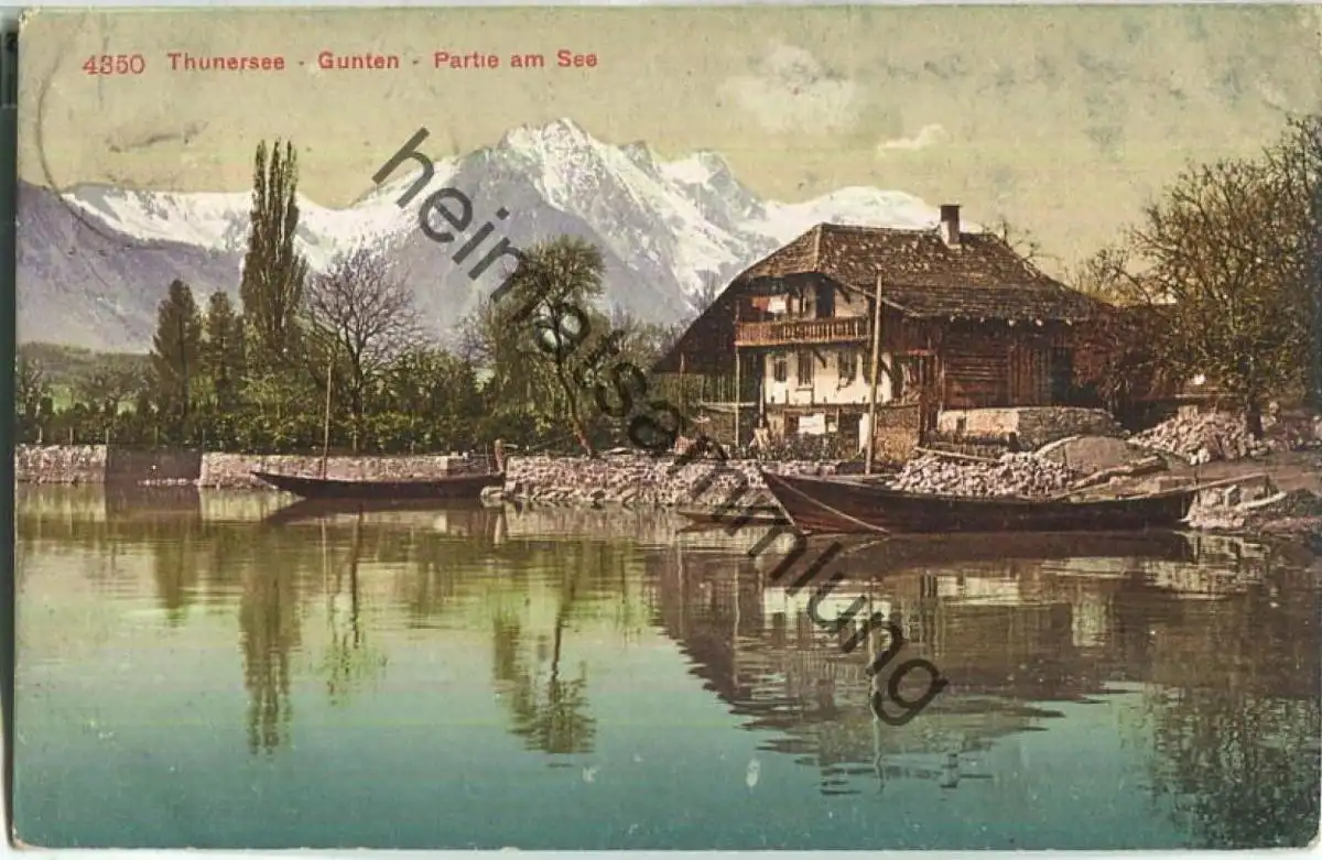 Thunersee - Gunten - Partie am See - Edition Photoglob Co. Zürich - Gebrauchsspuren (E90885) gel. 1908