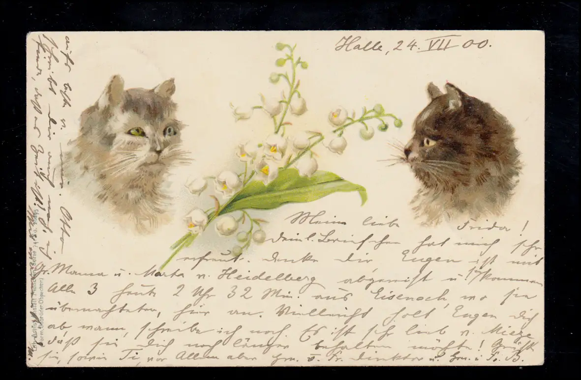 Tiere-AK Zwei Katzen zwischen Maiglöckchenzweig, BALLENSTEDT 24.7.1900