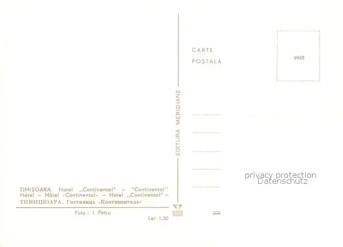 Timisoara Hotel Continental Timisoara postalisch nicht gelaufen nach 1965 Erhaltung siehe scans [WerneD78] WernPID7