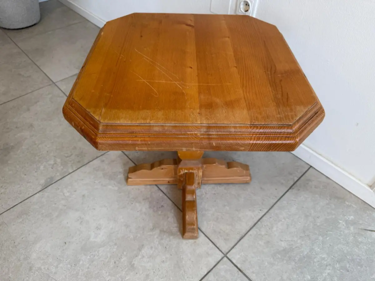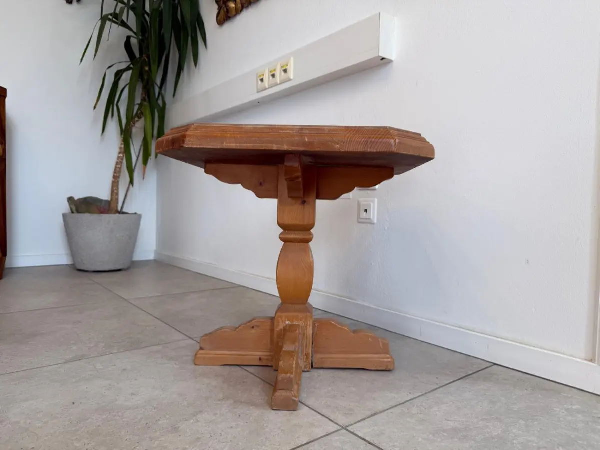 Zum Verkauf steht ein massives Tischerl aus Kiefernholz.