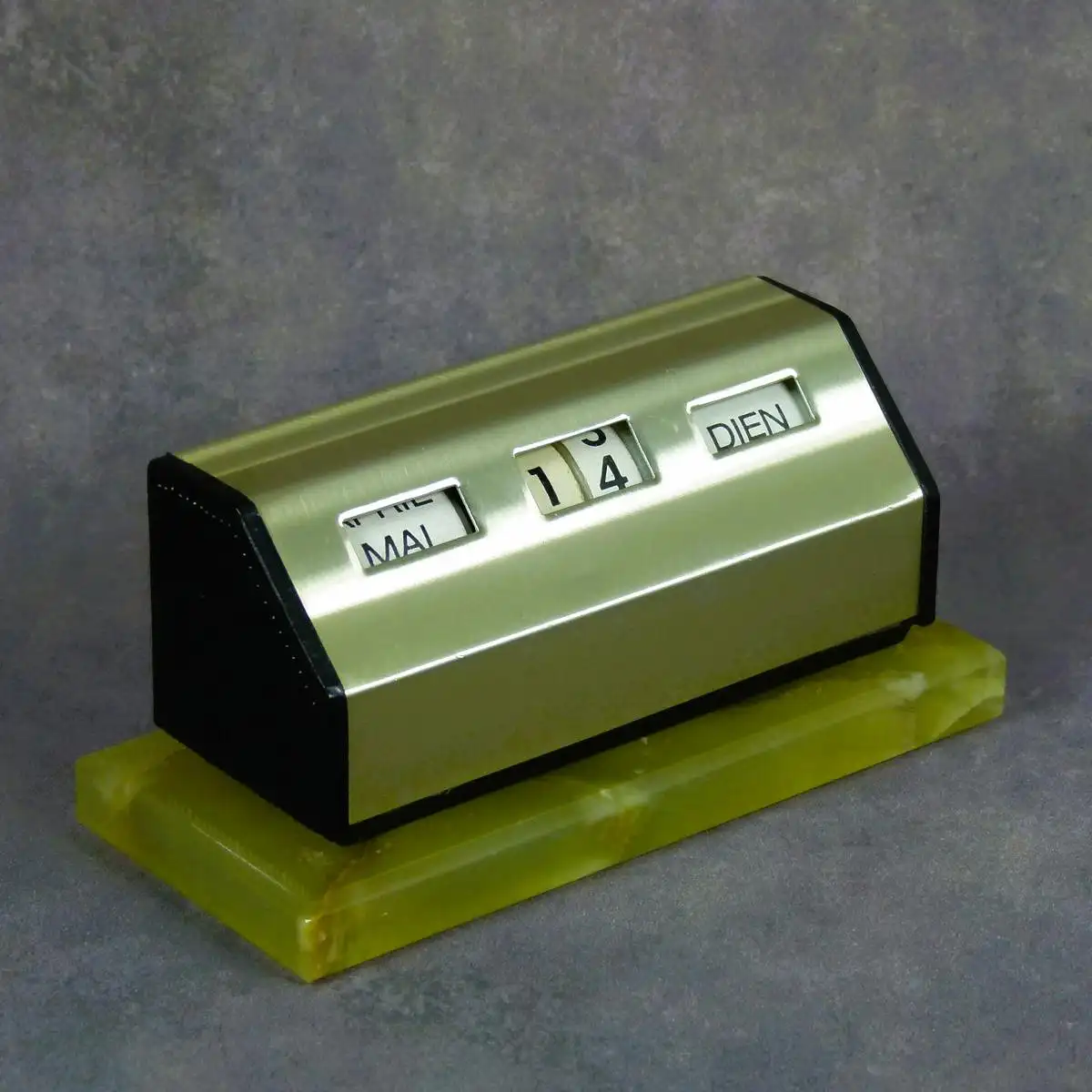 Tischkalender,Messing,Onyx,deutsche, Handwerkskunst,Mitte, 20., Jahrhundert,Sammlerstück,dekorative, Kunst,Vintage-Dekor