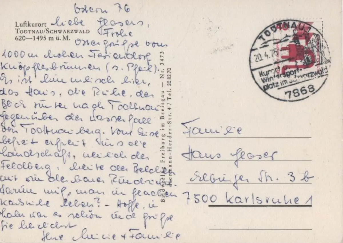 Postleitzahl:79674 (neu) / W 7868 (alt)
