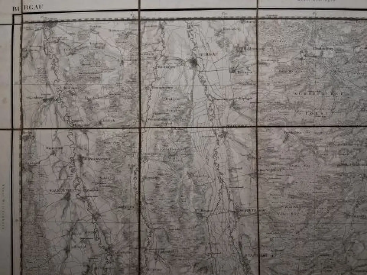 Titel: ORIGINAL.-KARTE (Kupferstich) aus der Topographischer Atlas vom Königreiche Baiern (Bayern) diesseits des Rhein (1812-1867). Blatt 68. BURGAU (1.50.000) *