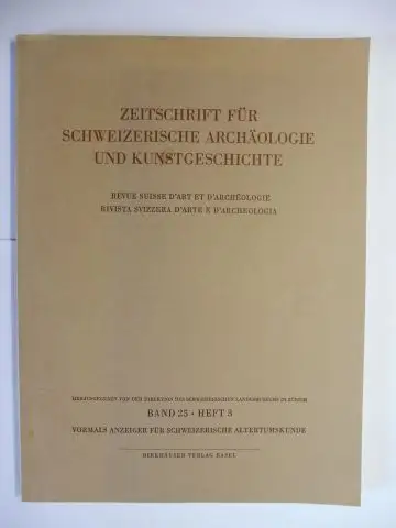 Titel: ZEITSCHRIFT FÜR SCHWEIZERISCHE ARCHÄOLOGIE UND KUNSTGESCHICHTE - BAND 25 - HEFT 3 *