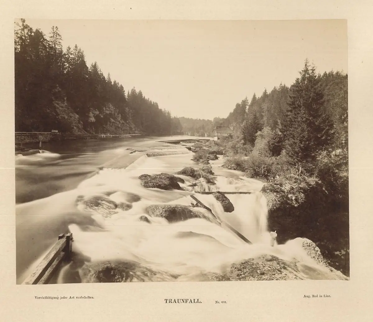 Bemerkungen: Ansicht des Traunfalls in Oberösterreich, aus dem Atelier von August Red (1828-1888) in Linz.