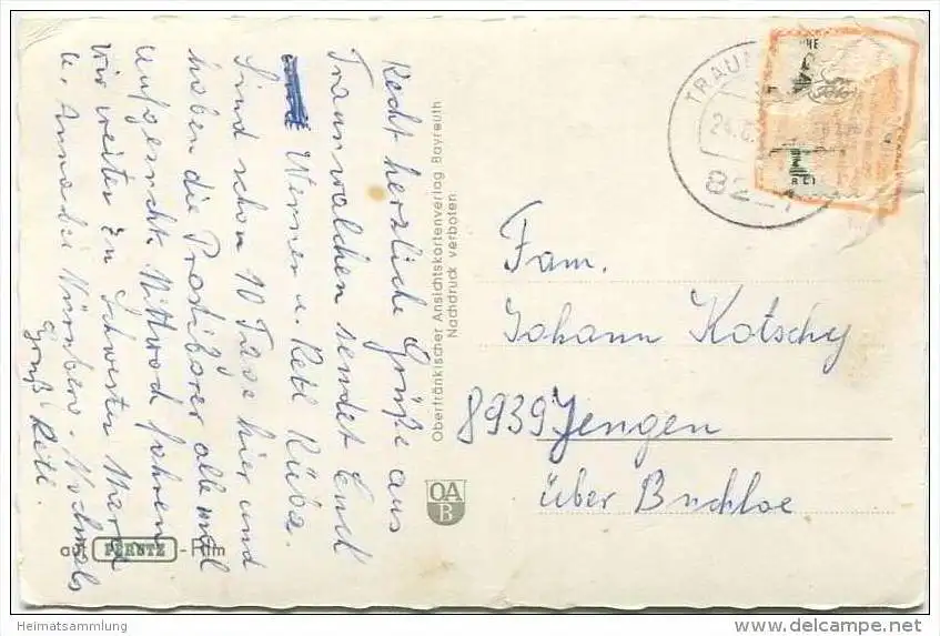 Traunwalchen im Chiemgau - Oberfränkischer Ansichtskartenverlag Bayreuth - Gebrauchsspuren Ecken geknickt - Marke entfernt (E13361) gel.