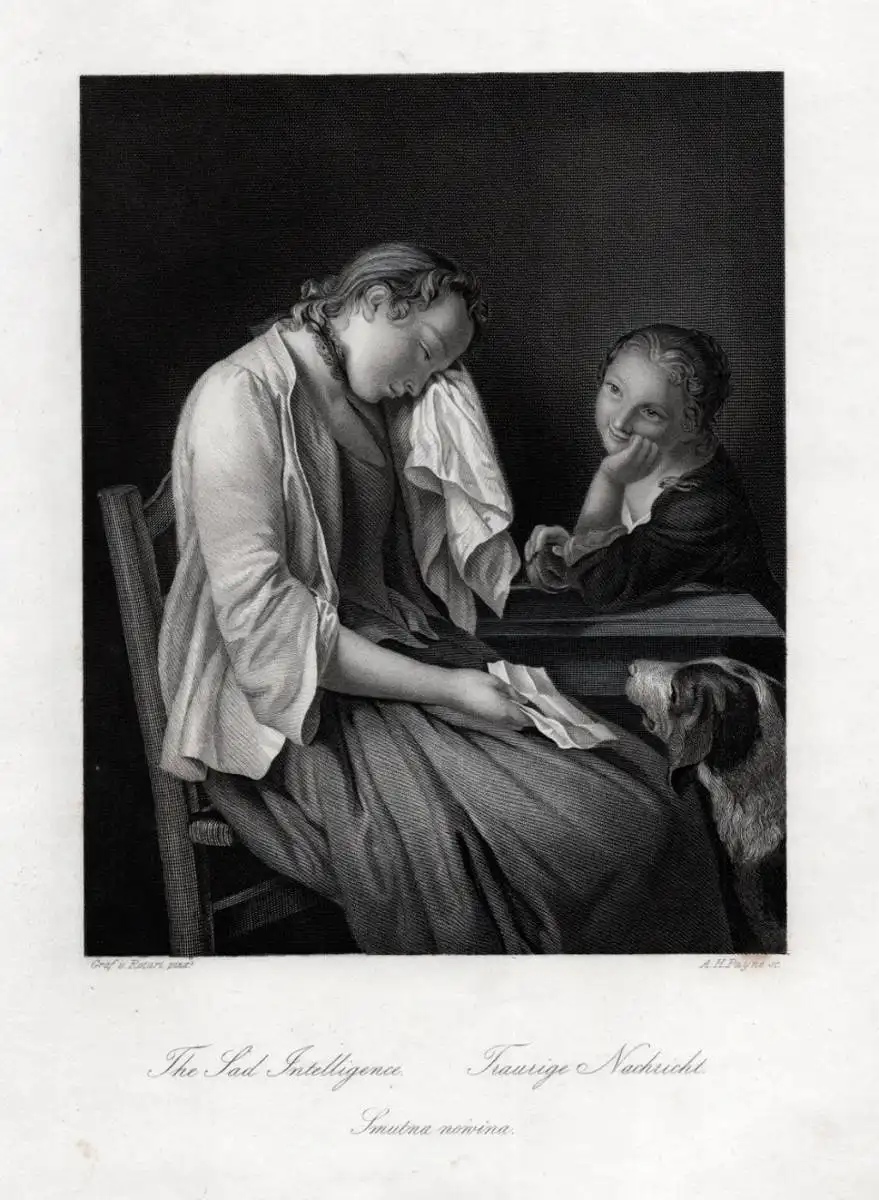 Traurige Nachricht. Originaler Stahlstich; von Payne um 1850