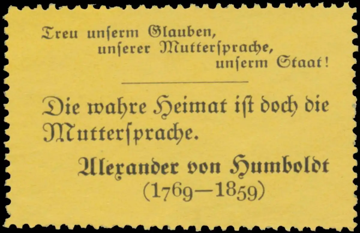 Die wahre Heimat ist doch die Muttersprache. Alexander von Humboldt, Größe/Zustand: 3x5 , guter Zustand, Original alte Reklamemarke die seinerzeit für die Werbung benutzt wurde