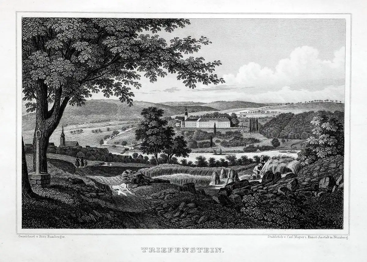 Triefenstein. Main / Spessart, Gesamtansicht. Originaler Stahlstich um 1850