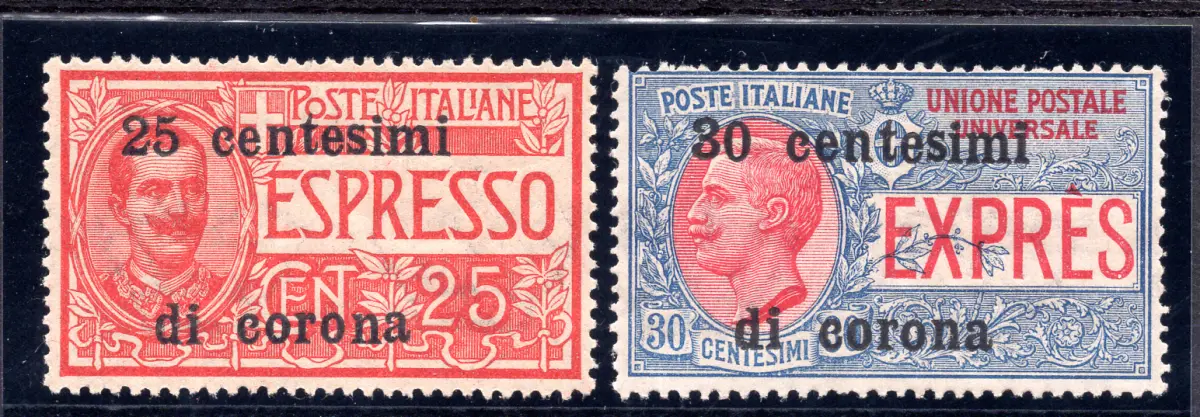- MNH Vollgummi MNH - Trient und Triest - Briefmarken Italiens Express in Kronencent Nr. überdruckt. 1/2 komplette Serie, alle von ausgezeichneter Qualität und guter Zentrierung mit Vollgummi Katalog Euro30 Cod.2263/WEB