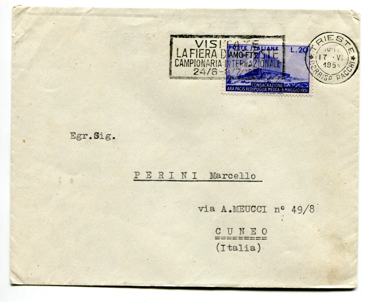 Triest A - Ara Pacis isoliert auf Umschlag im Tarif Umschlag - Triest A - Ara Pacis Nr. 111 isoliert auf Umschlag für Cuneo - im Tarif Euro60 Cod.1503/WEB