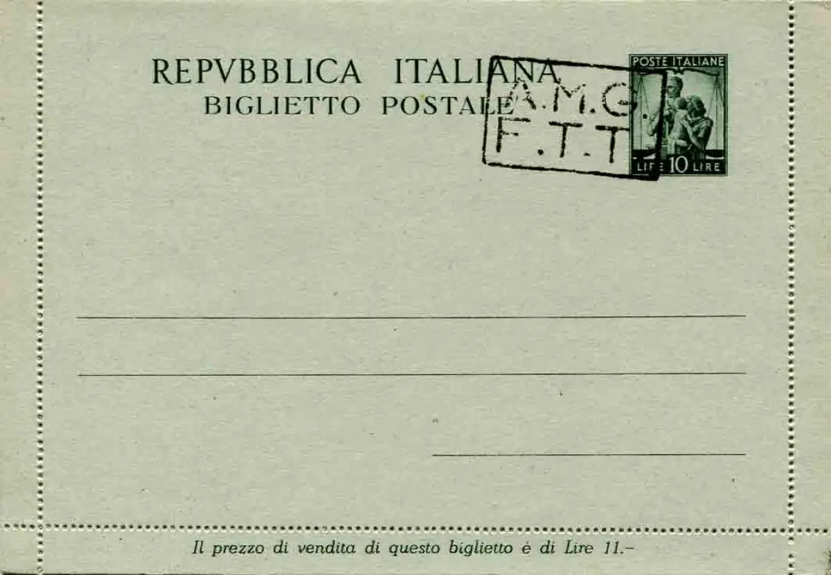Triest A - B. P. Lire 10 Democratica Aufdruck B auf der Briefmarke AK - Triest A - B. P. Lire 10 Democratica n. B 1C Aufdruck B auf der Briefmarke - postfrisch einwandfrei - Selten - Kat. 200 n. 1005/6