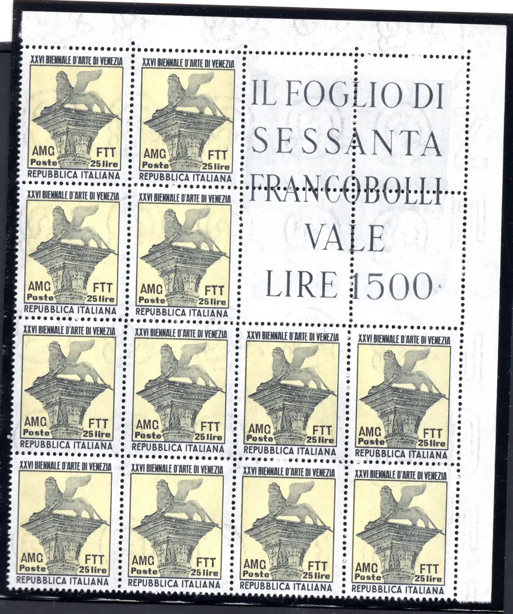 MNH - Vollgummi - - Triest A - 1952 Biennale d'Arte di Venezia Eckblock von zwölf Exemplaren (Katalog Coll.it Nr. 16) - neu mit Vollgummi - Selten Cod. 2438 / WEB