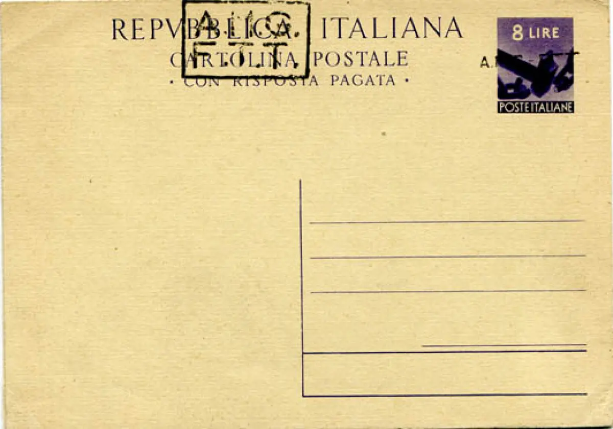 - Triest A - C. P. Lire 8 + 8 Democratica Nr. C 6A Handaufdruck (A+B) - die Postkarte Antwort nur mit dem A-Aufdruck - neu in gutem Erhaltungszustand (Ecken zerknittert) - sieht trotzdem sehr gut aus Nr. 1100/L