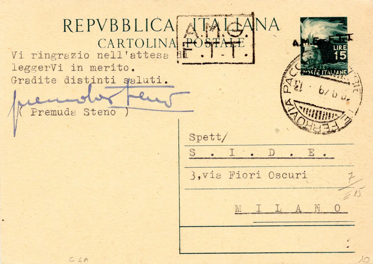 Postkarte - Triest A - C.P. Lire 15 Democratica Handaufdruck Typ A+B (Nr. C 4A) am 18.9.49 nach Triest gereist - wertvolle nicht philatelistische Postnutzung Cod. 1149/17