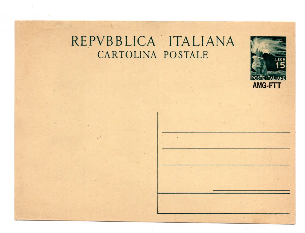 - Trieste A - C.P. 15 Lire Demokratischer Aufdruck unter der Briefmarke Nr. C14 - postfrisch einwandfrei - Kat. 25 n. 1123/18