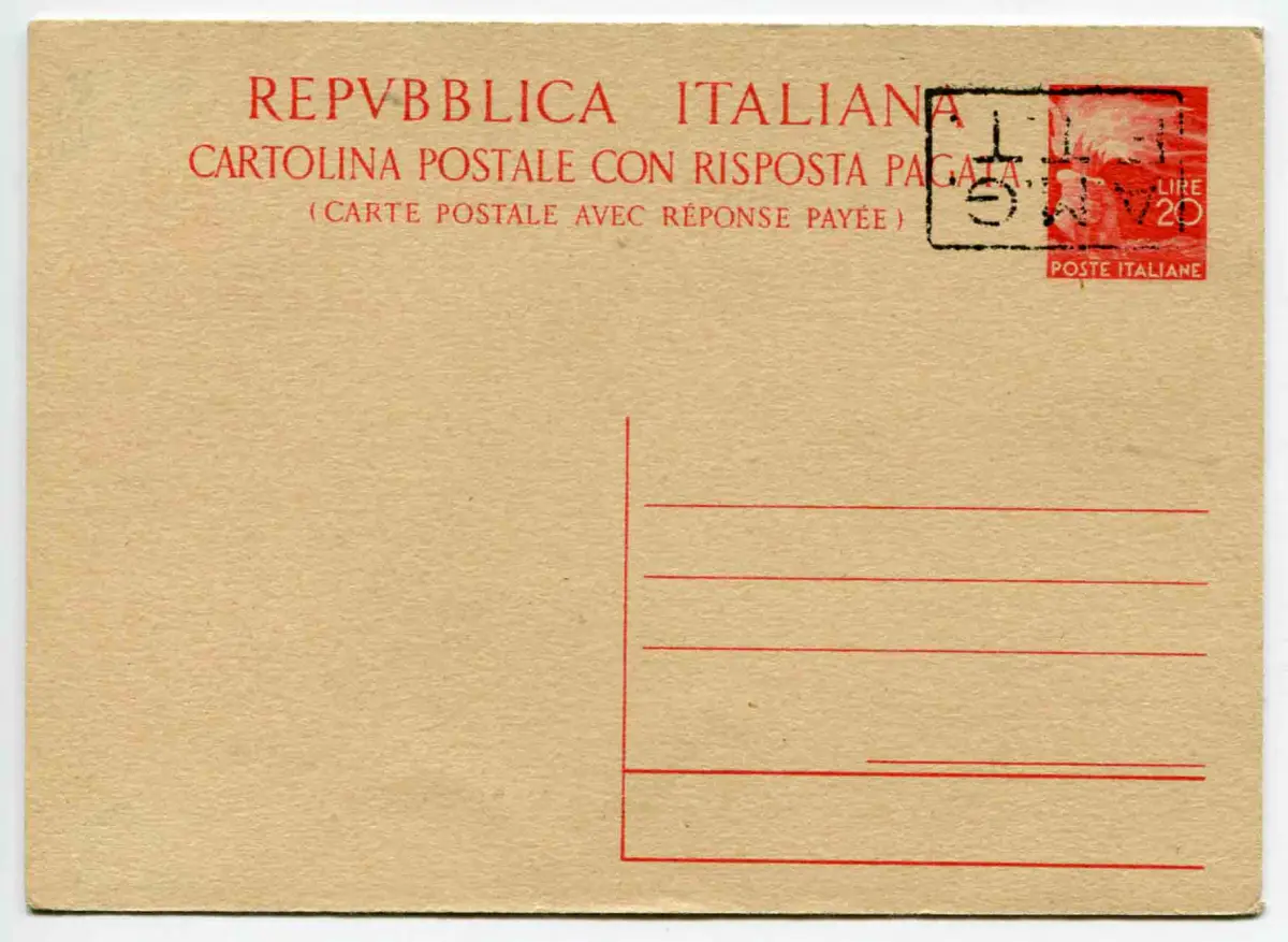 Triest A - C.P. Lire 20+20 Democratica n. C 8D Aufdruck B umgedrehte Postkarte - Triest A - C.P. Lire 20+20 Democratica n. C 8D Aufdruck B umgedreht auf der Briefmarke - Selten - Kat. 375 Code Nr. 827/4