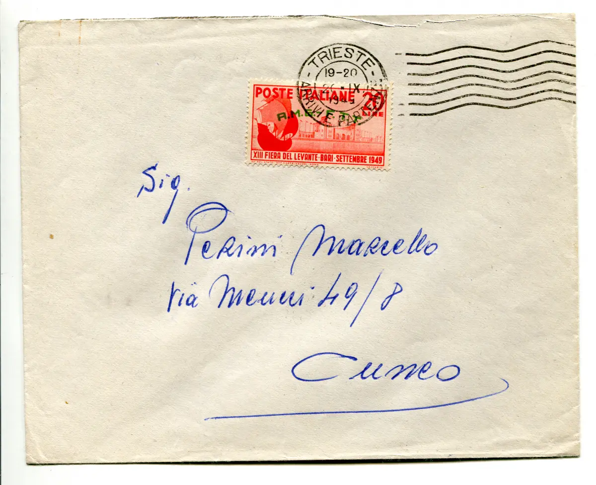 Triest A - Fiera Levante '49 isoliert auf Umschlag im Tarif Umschlag - Triest A - Fiera Levante 1949 Nr. 51 isoliert auf Umschlag für Cuneo - im Tarif Euro100 Cod.1514/WEB