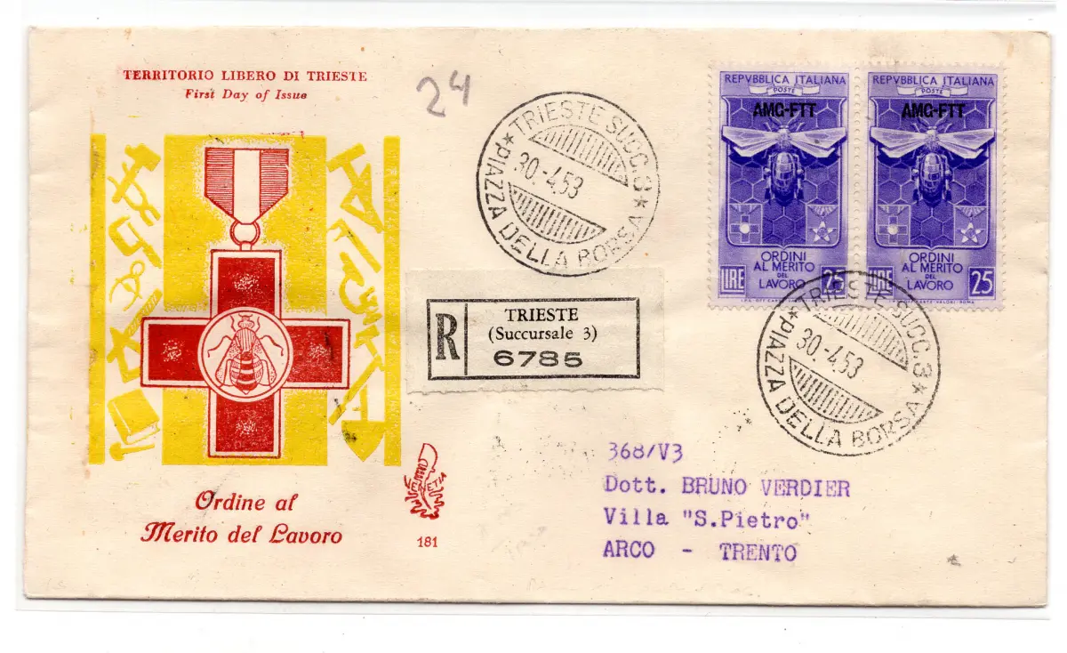 Umschlag - Verdienst der Arbeit Nr. 166 Paar auf Umschlag Racc. mit Ankunftsstornierung Cod. 587/17