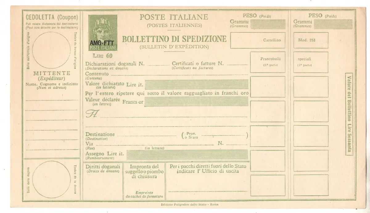 Postkarte - Triest A - Versandzettel Lire 60 Paschetto mit Druckaufdruck Nr. P 19, neu in sehr gutem Erhaltungszustand - Selten, extrem unterbewertet in den Katalogen Cod. 3217 / WEB