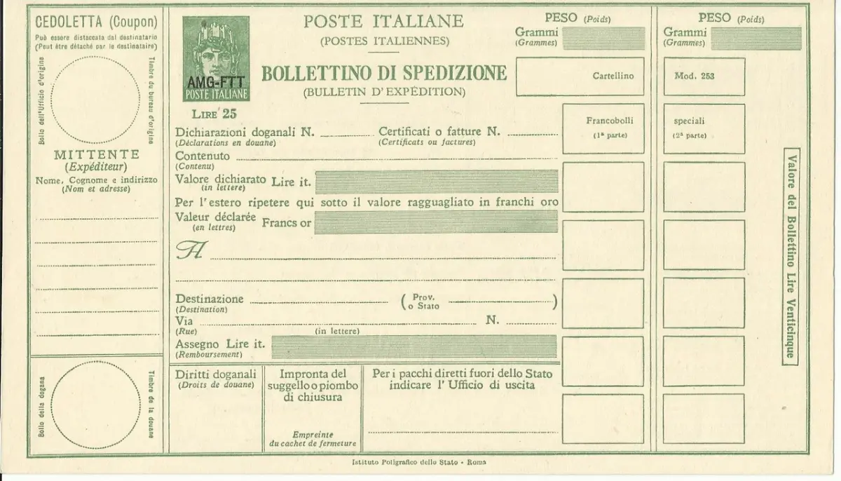 Triest A - Versandschein Lire 25 Paschetto Nr. P 16 Postkarte - Triest A - Versandschein Lire 25 Paschetto Nr. P 16 neu, sehr guter Erhaltungszustand - Kat. 50 Code Nr. 885/4
