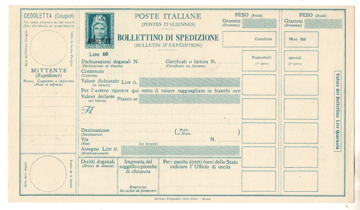 Postkarte - Triest A - Versandzettel Lire 40 Turrita mit Druck Nr. P 11, neu in sehr gutem Erhaltungszustand - Selten, extrem unterbewertet in den Katalogen Cod. 3212 / WEB