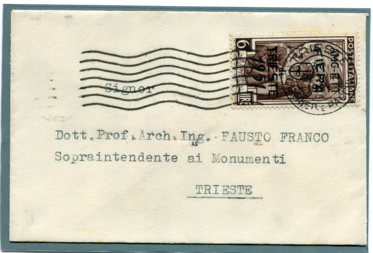 Triest A Fiera di Trieste '51 isoliert auf offenem Beutel Umschlag - Fiera di Trieste '51 Lire 6 Nr. 121 isoliert auf Beutel (geöffnet) von Triest nach Stadt am 22.12.51 - Uncommon Cod. 1020/14