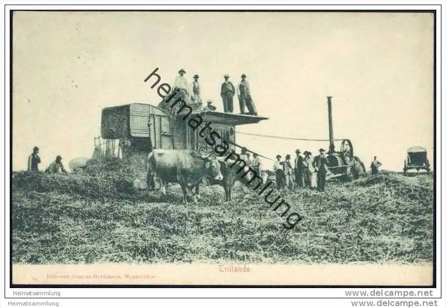 Trillando - Dreschmaschine - Threshing Machine ca. 1900 - Editores Almera Hermanos Montevideo (E3285)