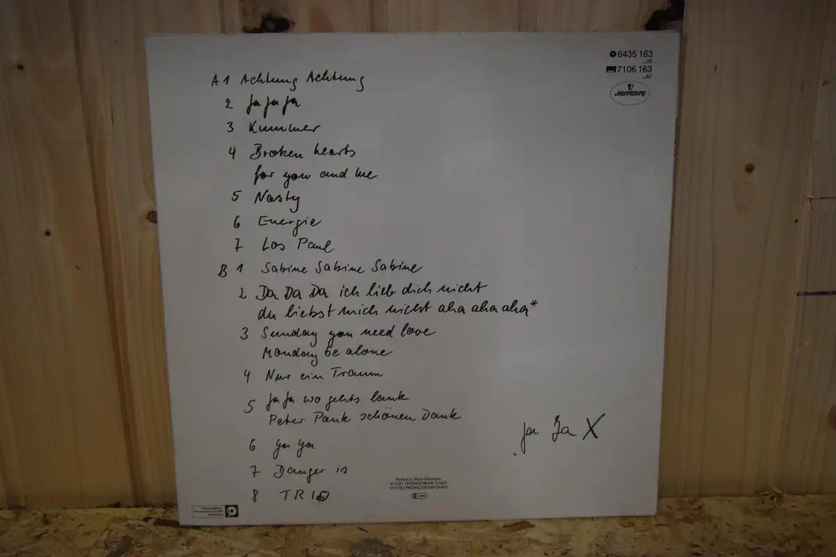 4) Alle Schallplatten werden in PE Schutzhülle verschickt , Innencover mit Schallplatte außerhalb des Außencovers platziert um das durchstoßen von LPs durch die Cover beim Transport auszuschließen. Singles erhalten dazu generell ein neutral weißes Innencover, LPs und Maxis bei Bedarf .