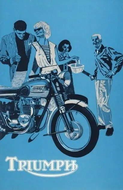 sehr guter Zustand, geringe Gebrauchs- und Alterungsspuren, original Prospekt Nr. 903/64 "Diese Broschüre zeigt Ihnen das neue Triumph-Programm von 200 ccm bis 650 ccm ..." "Gold Medal Serie" 650 Trophy, Thunderbird und Bonneville sowie Tiger Cub, Sports Cub, Speed Twin, Tiger 90 und Tiger 100, Papier, ca. 14 x 21,5, 8 Seiten mit 9 Bildern