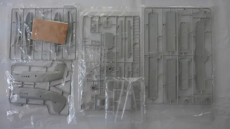 Einzelteile (Plastikbauteile) befinden sich in versiegelten Sichthüllen.