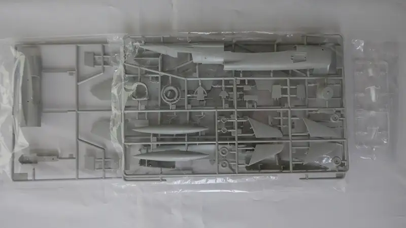 Einzelteile (Plastikbauteile) sind noch am Rahmen fixiert, Sichthüllen wurden geöffnet.