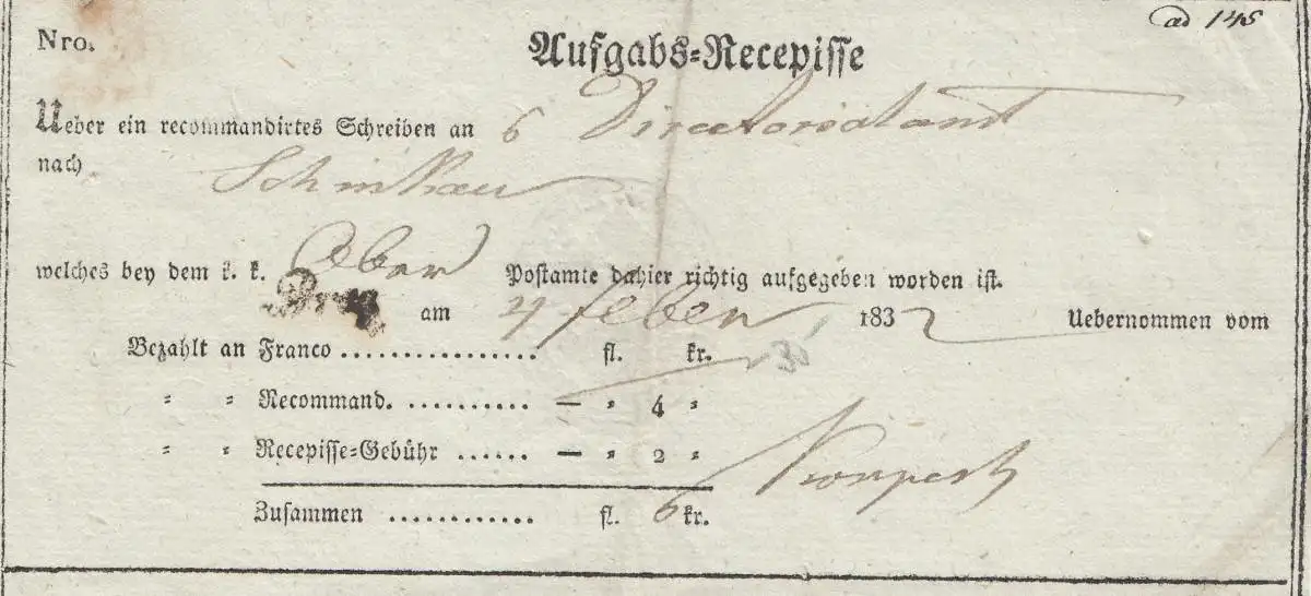 Tschecheslowakei: 1832: Aufgabs-Recepisse über Einschreiben