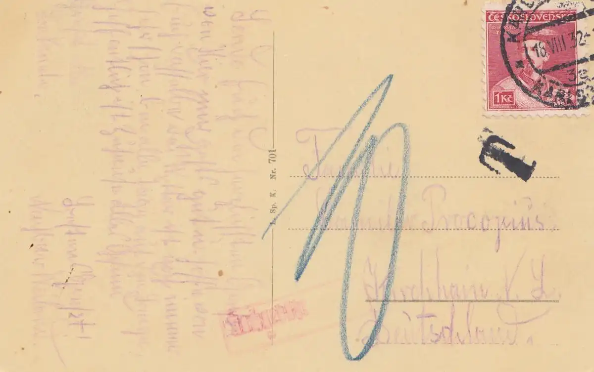 Tschecheslowakei: 1932: AK Karlsbad nach Kirchhain, Nachgebühr