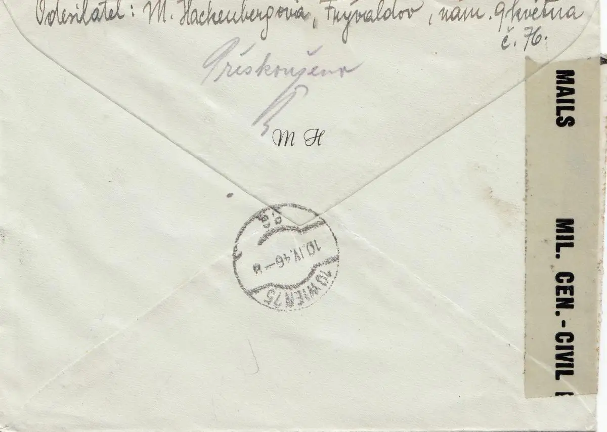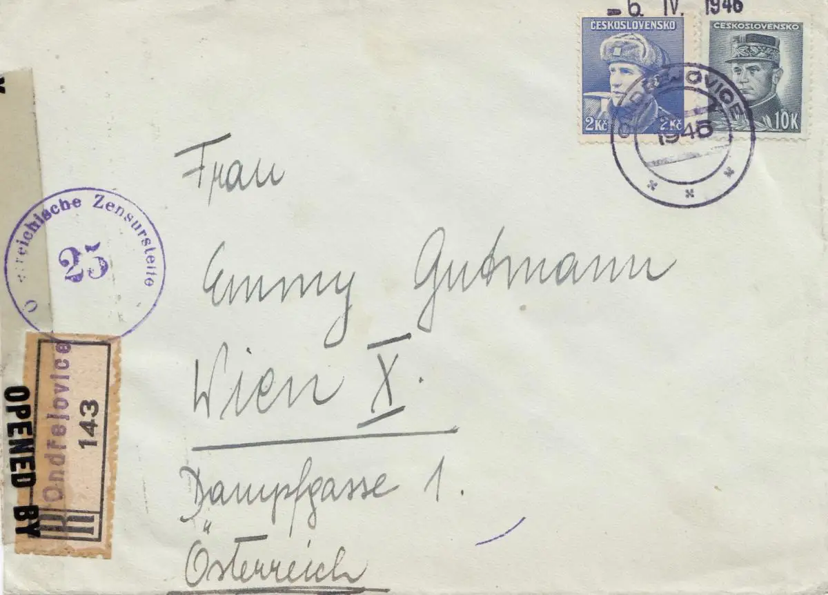 Tschecheslowakei: 1946: Einschreiben Ondrejovice nach Wien, Zensur