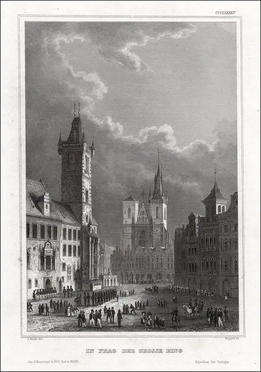 Tschechien, Prag, Der grosse Ring, echter Stahlstich, Poppel, um 1850