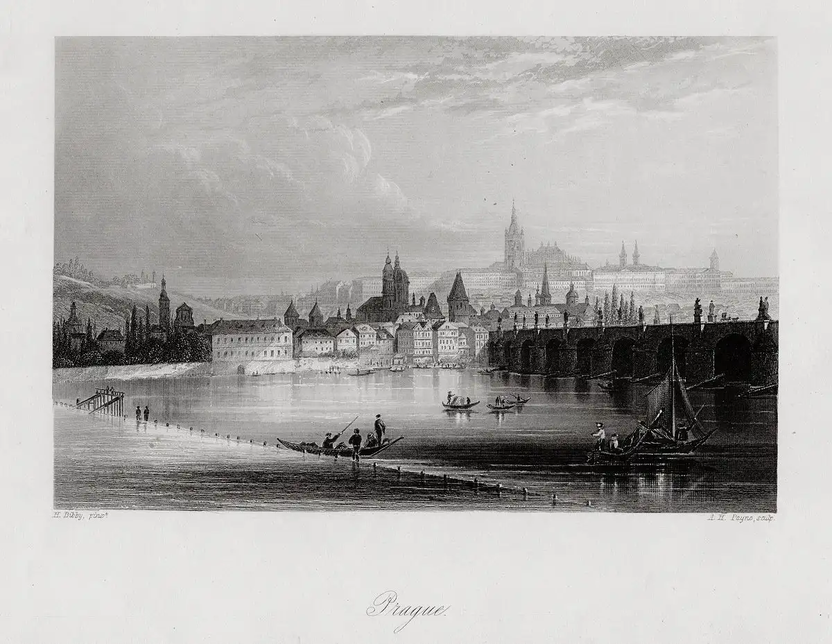 Tschechien, Prag, Gesamtansicht, echter Stahlstich, um 1860