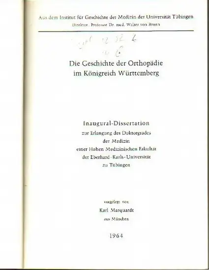 Tübingen. - Marquardt, Karl: Die Geschichte der Orthopädie im Königreich Württemberg. Dissertation an der Eberhard-Karls-Universität zu Tübingen, 1964.