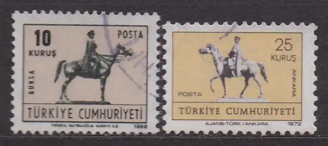 Türkei, Mi-Nr. 2155 + 2257 gest., Atatürk-Reiterstandbilder
