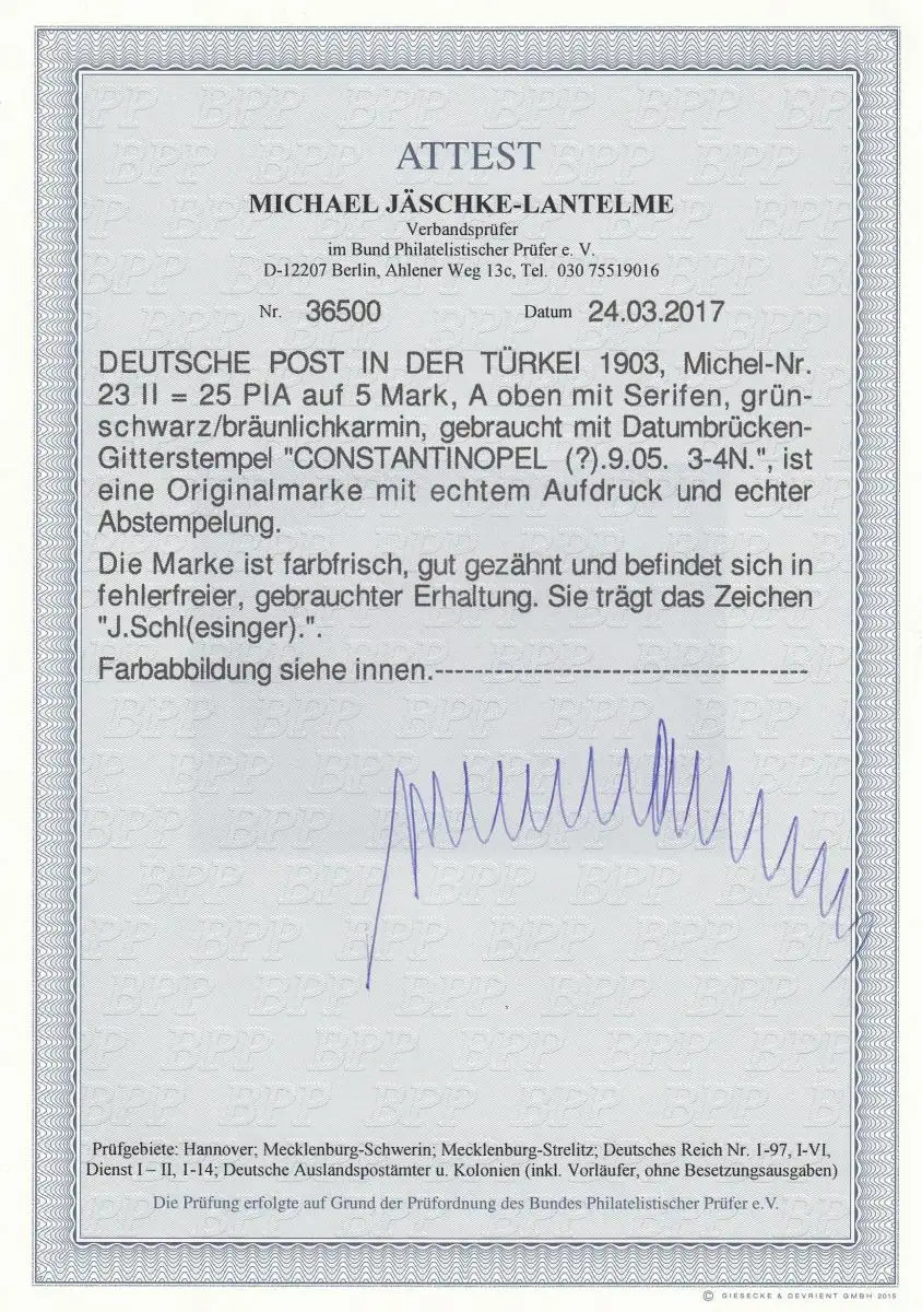 Türkei: MiNr. 23 II, gestempelt Constantinopel, BPP Attest