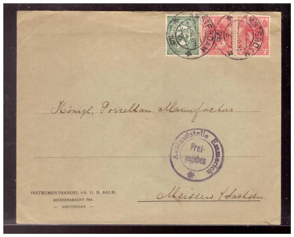 Niederlande (022531) Vorgedrucker Brief mit Zensur Auslandsstelle Emmerich, Freigegeben