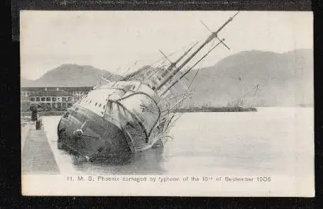 Typhoon. HMS Phoenix damaged by typhoon ..1906 - Nicht gelaufen. (Katastrophen)