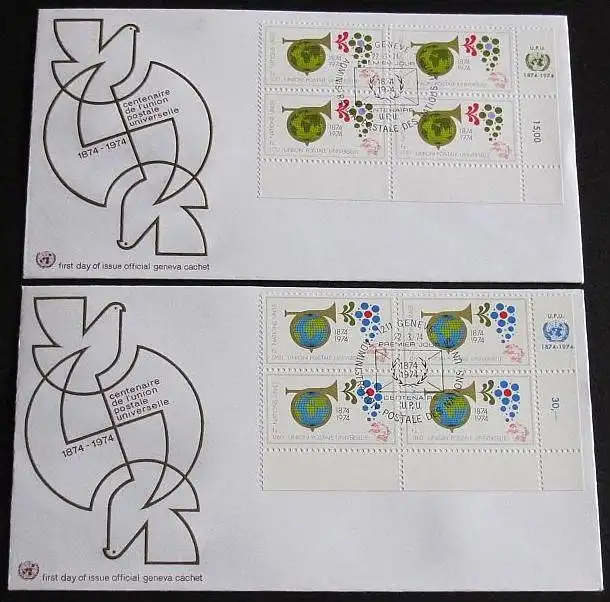 UNO GENF 1974 Mi-Nr. 39/40 Viererblock FDC