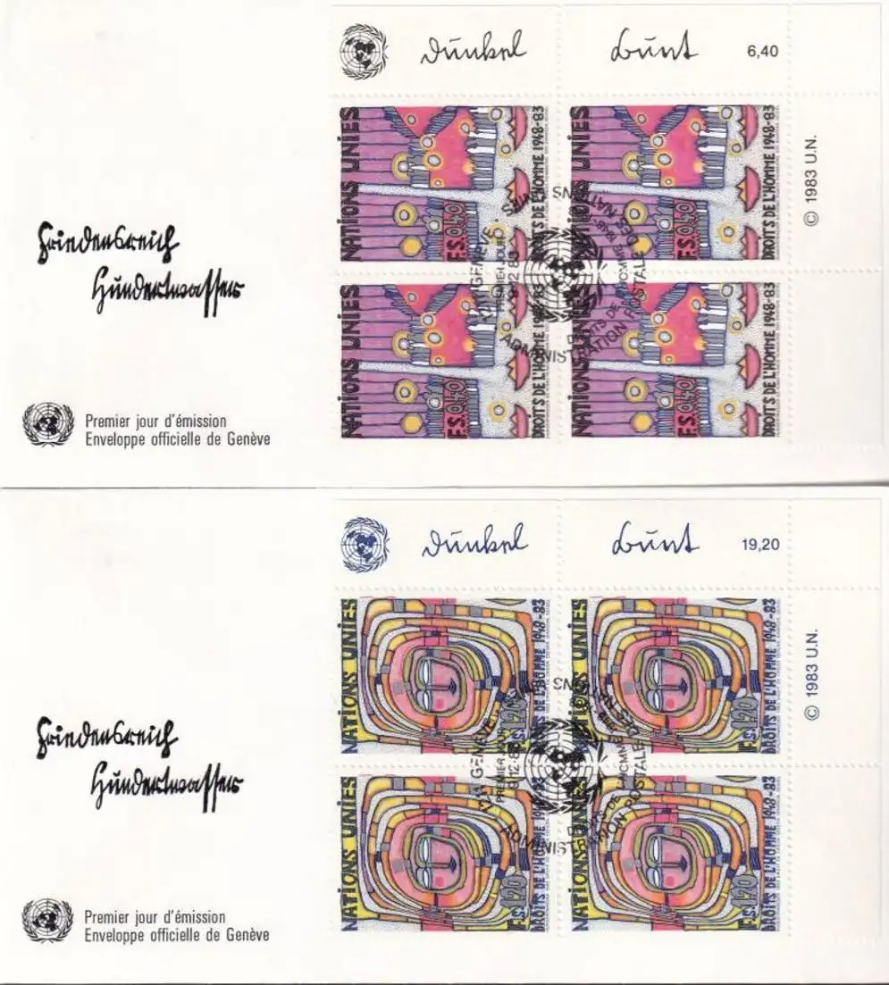 UNO GENF 1983 Mi-Nr. 117/18 Eckrand-Viererblock FDC