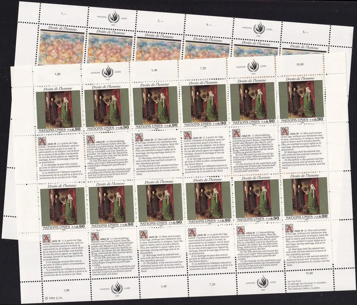 UNO GENF 1991 Mi-Nr. 208/09 Kleinbogen Menschenrechte ** MNH