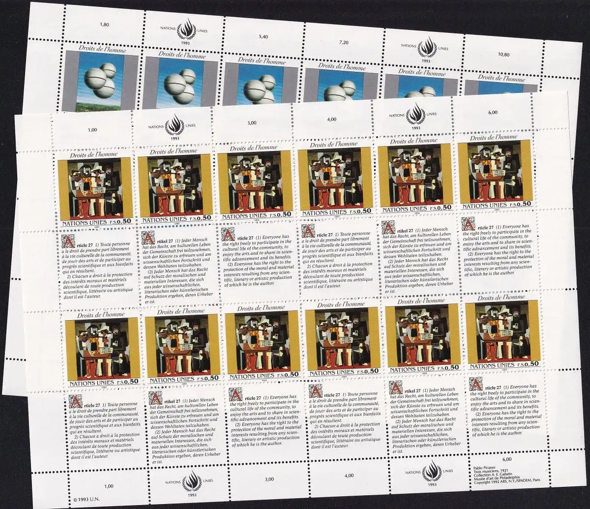 UNO GENF 1993 Mi-Nr. 233/34 Kleinbogen Menschenrechte ** MNH